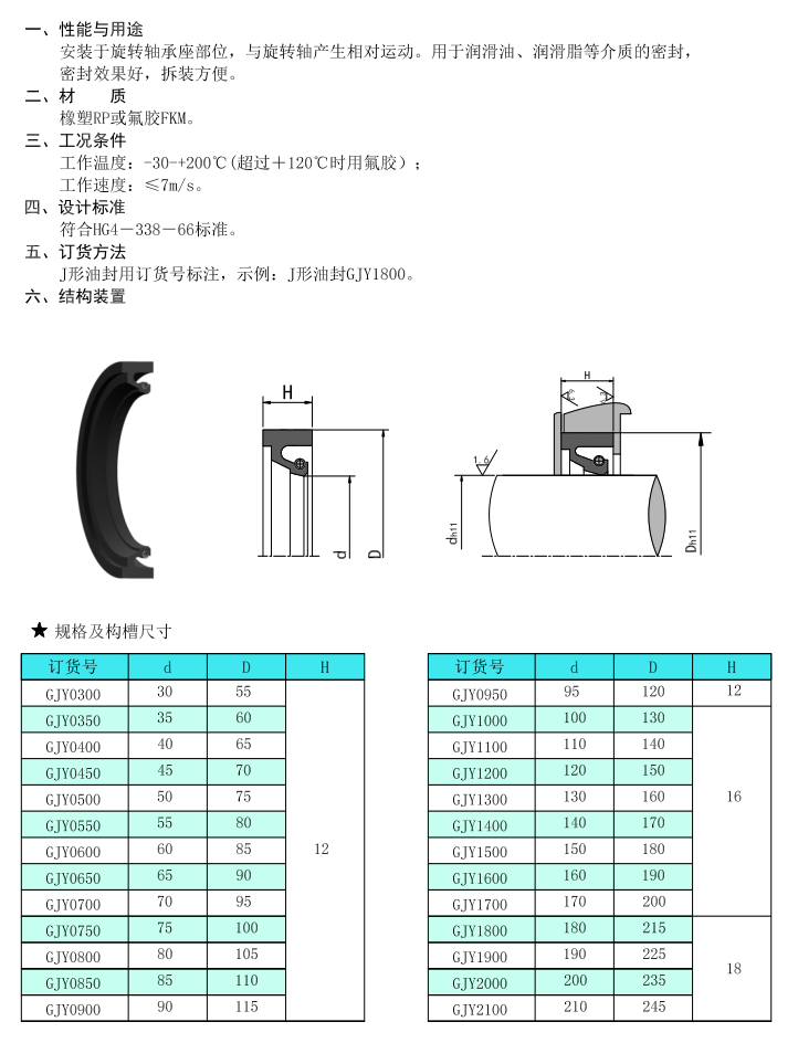 >> J形无骨架油封GJY
