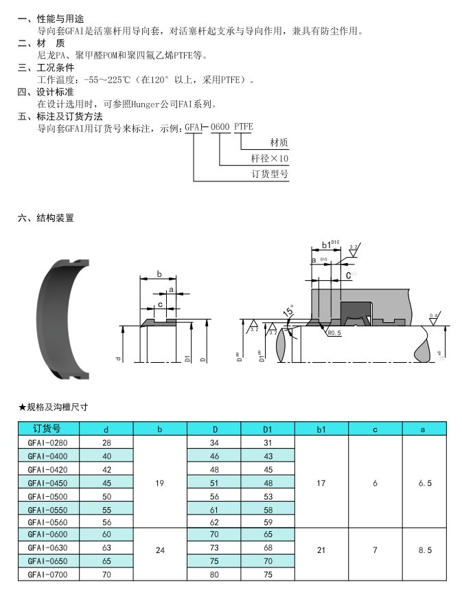 D酚醛树脂、聚甲醛、尼龙支承环(抗磨环)、导向套等